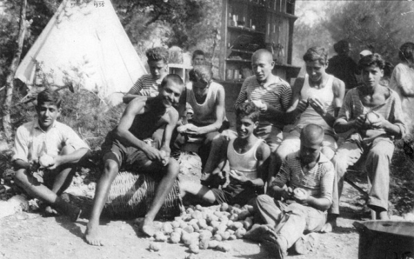 Το 1932, πριν από 78 χρόνια, ο κ.Πυρουνάκης τόλμησε να λειτουργήσει την πρώτη Κατασκήνωση για τα εργαζόμενα νιάτα στο, πευκόφυτο τότε, Πέραμα. Τα παιδιά αυτά από τα 13 τους χρόνια δούλευαν στα εργοστάσια του Πειραιά κάτω από σκληρές συνθήκες και απάνθρωπη μεταχείριση από τους εργοδότες τους. Γι΄ αυτά τα παιδιά κάνει την πρώτη κατασκήνωση στην περιοχή του Περάματος που τότε ήταν δασική και η προσβαση σε αυτήν ήταν δύσκολη.